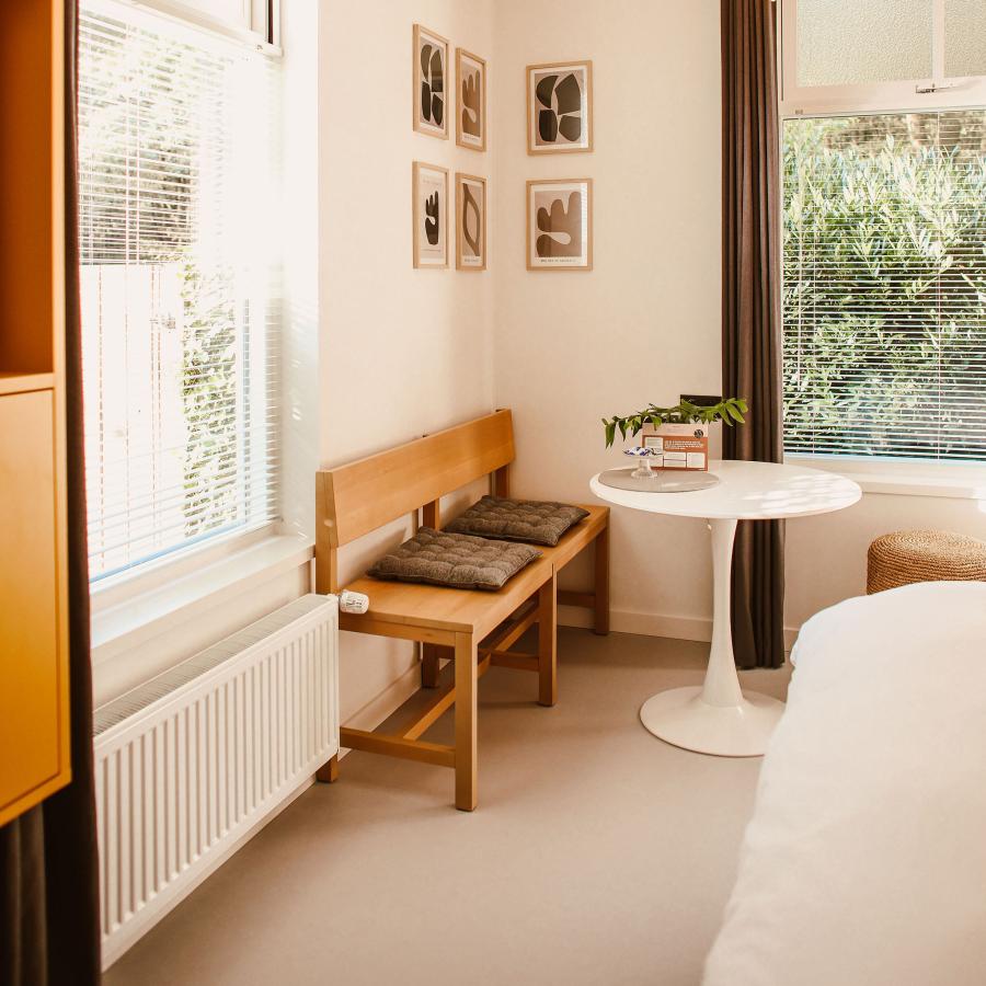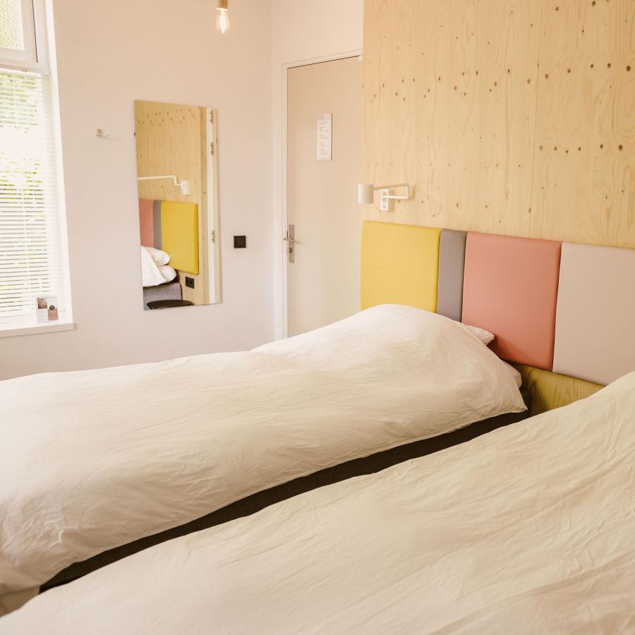 En kom je met een vriend, vriendin of je moeder, dan kan het tweepersoonsbed uit elkaar worden geschoven. Baby mee? We schuiven met liefde een extra babybedje bij.